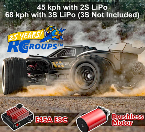 The smart 45A ESC supports both 2S and 3S LiPo batteries. Drop in a 3S 11.1V pack and unlock speeds of 42+ mph (68+ kph) under optimal conditions